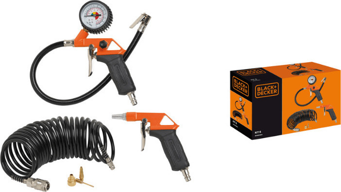 Σετ 6 τμχ αέρος kit BLACK+DECKER, ιδανικό για συντήρηση και αξιόπιστη λειτουργία εργαλείων αέρος. Προσφέρει υψηλής ποιότητας κατασκευή, μεγάλη αντοχή και σταθερή απόδοση για επαγγελματική χρήση.