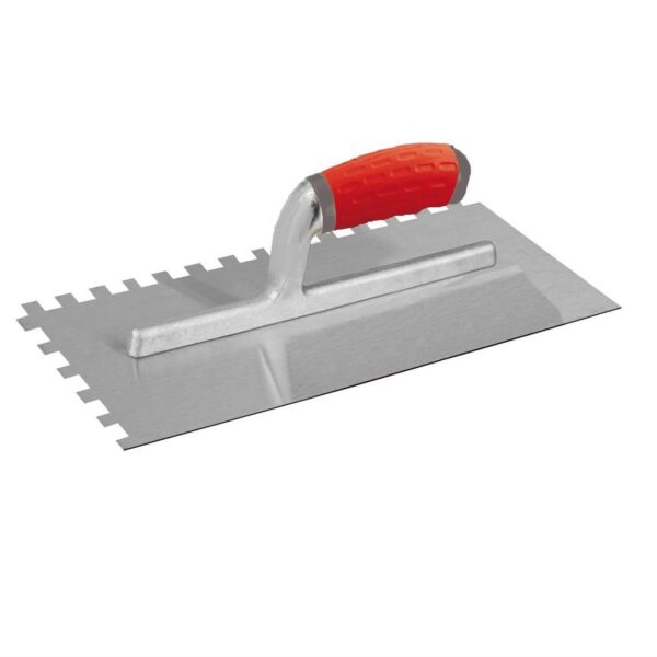 Σπάτουλα πλακιδίων 15×15 cm με soft λαβή για άνετο κράτημα και λεία εφαρμογή κόλλας. Ιδανική για επαγγελματική τοποθέτηση πλακιδίων με ακρίβεια.