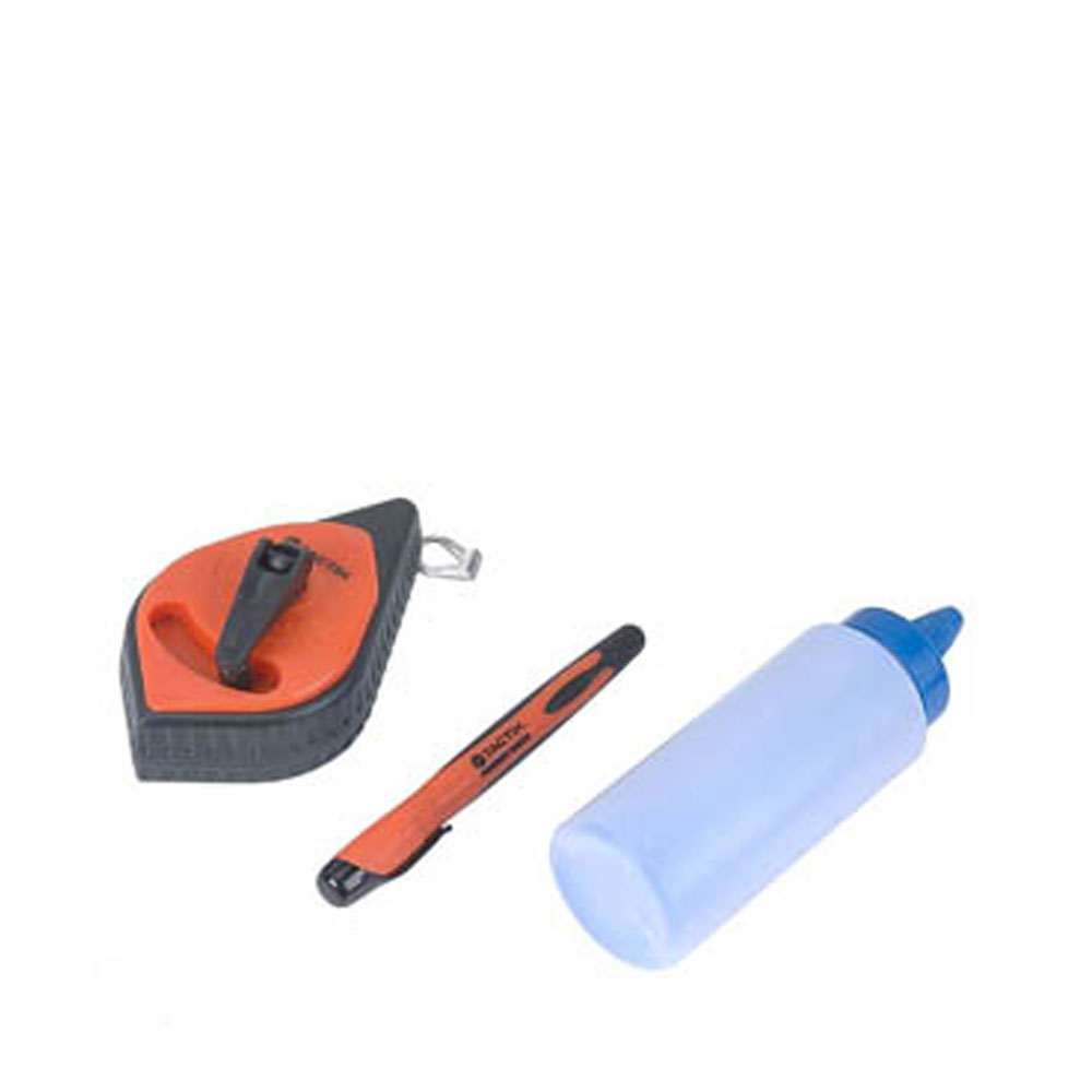 Σετ σημαδευτικό κιμωλίας με μπλε σκόνη, ιδανικό για ακριβή χάραξη σε ξύλο, μέταλλο και τοίχο. Κατάλληλο για εργοτάξια και εργαστήρια, με έντονο χρώμα που διαρκεί.
