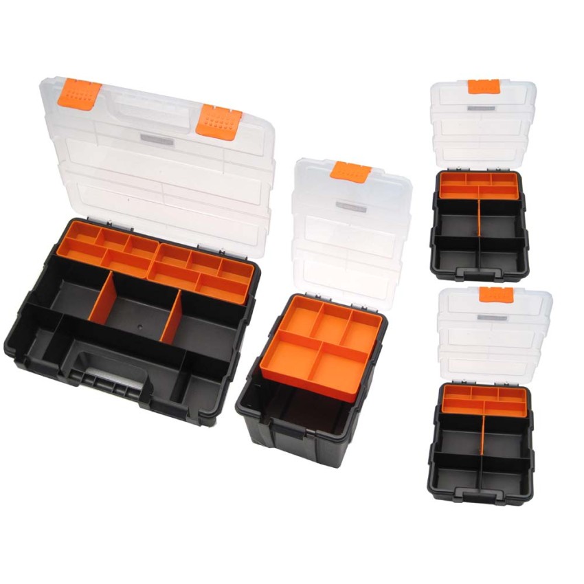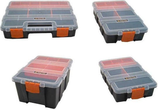Σετ 4 σε 1 πλαστικές ταμπακιέρες Tactix με πολλαπλές θήκες για οργάνωση μικροεξαρτημάτων. Στιβαρή κατασκευή, εργονομική μεταφορά και πρακτική αποθήκευση σε μία ενιαία μονάδα.