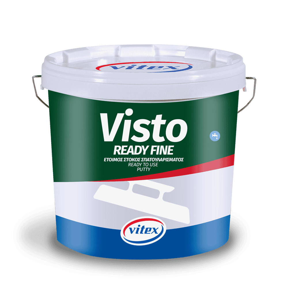 VISTO READY FINE έτοιμος στόκος, υψηλής ποιότητας για λείανση και φινίρισμα εσωτερικών επιφανειών. Εφαρμόζεται εύκολα, στεγνώνει γρήγορα και προσφέρει άριστη πρόσφυση και ομοιόμορφο αποτέλεσμα.