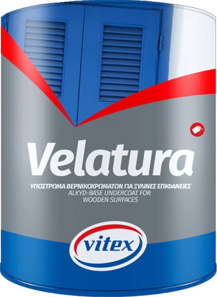 Vitex Βελατούρα Διαλυτού Υπόστρωμα διαλύτου για ξύλινες και μεταλλικές επιφάνειες. Προσφέρει εξαιρετική πρόσφυση, εύκολο τρίψιμο και ιδανική βάση για ριπολίνες ή βερνικοχρώματα. Κατάλληλη για εσωτερική και εξωτερική χρήση.